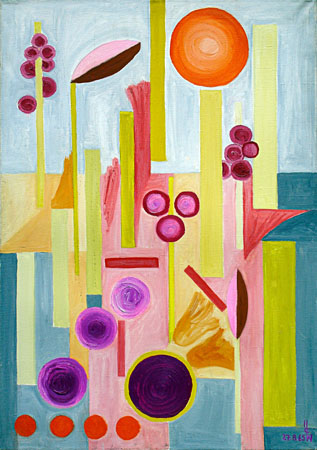 »Fuge auf Rot«, 1965 Öl auf Leinwand, Breite 70 x Höhe 100 cm